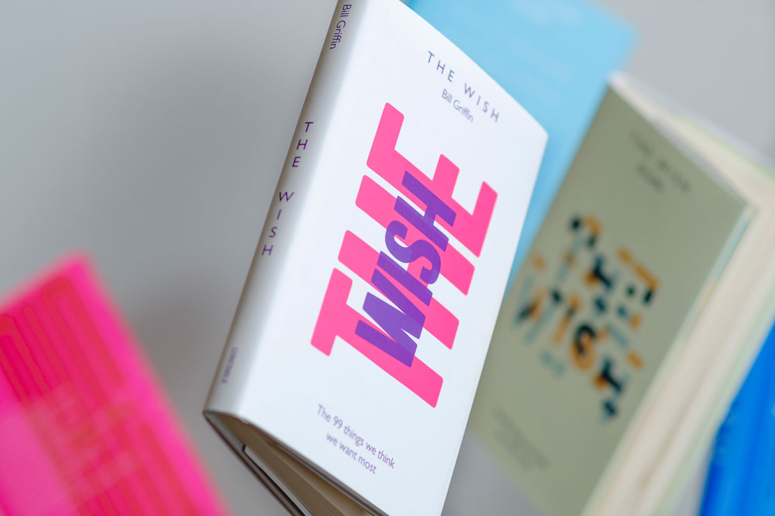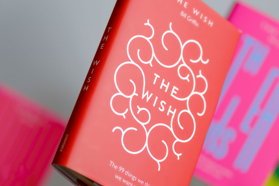 Consider this such a project. When faced with designing a book cover for Crowdwish creator, wish maestro and all round dude Bill Griffin’s new book ‘The Wish‘ we were met with the subtitle ‘The 99 things we think we want most’, and said ridiculous idea was born!.. 99 wishes… 99 book covers. Yes, 99 book cover designs. Working closely with the author and the publishing and creative teams at ‘Constable’ and ‘Little, Brown Book Group’ we created 99 different book cover designs that were printed on the latest digital presses. The covers range from the minimal to the obscure, there’s word searches, morse code, sketchy, binary, graffiti and all sorts. We had fun and so did the client. You can buy the book here.